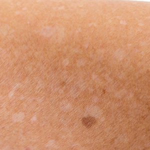 A leucodermia gutata refere-se a pequenas manchas brancas que aparecem em áreas expostas ao sol, como pernas e braços, causadas pela exposição cumulativa aos raios ultravioleta. Além da proteção solar para prevenir novas lesões, o tratamento pode incluir lasers, crioterapia e mesoterapia para estimular a repigmentação da pele.